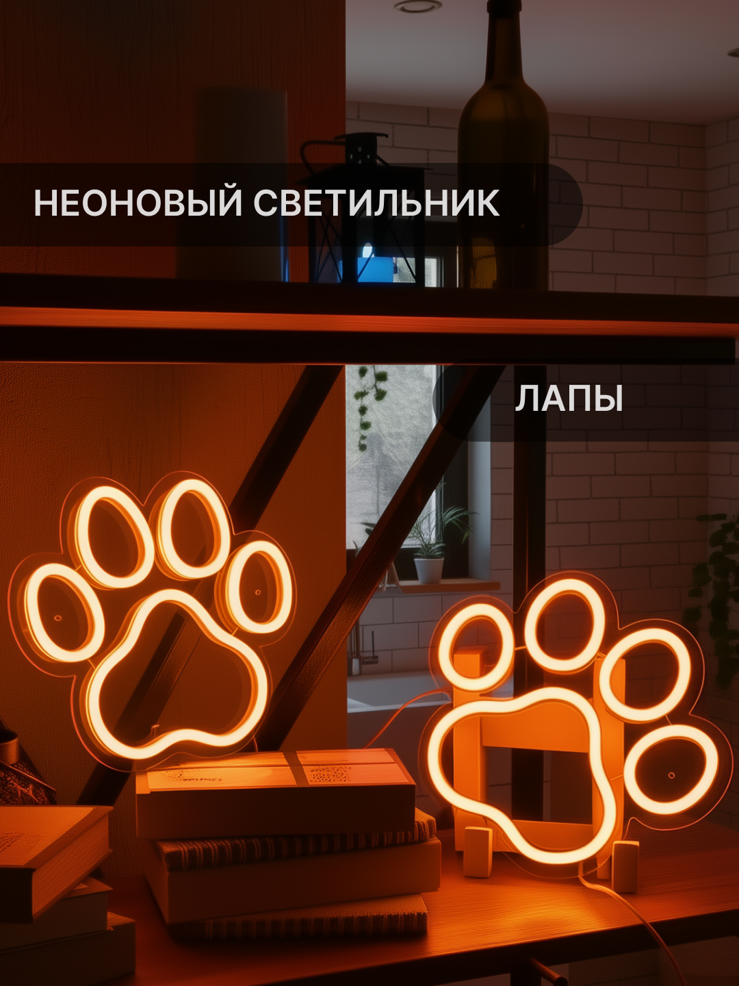 Декоративный неоновый светильник на прозрачной подложке Лапы, 40х33 см. Ручная работа. Изготовлен из гибкого небьющегося светодиодного неона. Силиконовая оболочка неона устойчива к механическим повреждениям. Подложка из прозрачного акрила толщиной 3 мм. Мы используем литой акрил, поэтому наши изделия прочные и их сложнее разбить. На прозрачной подложке предусмотрены отверстия для крепления к стене.
