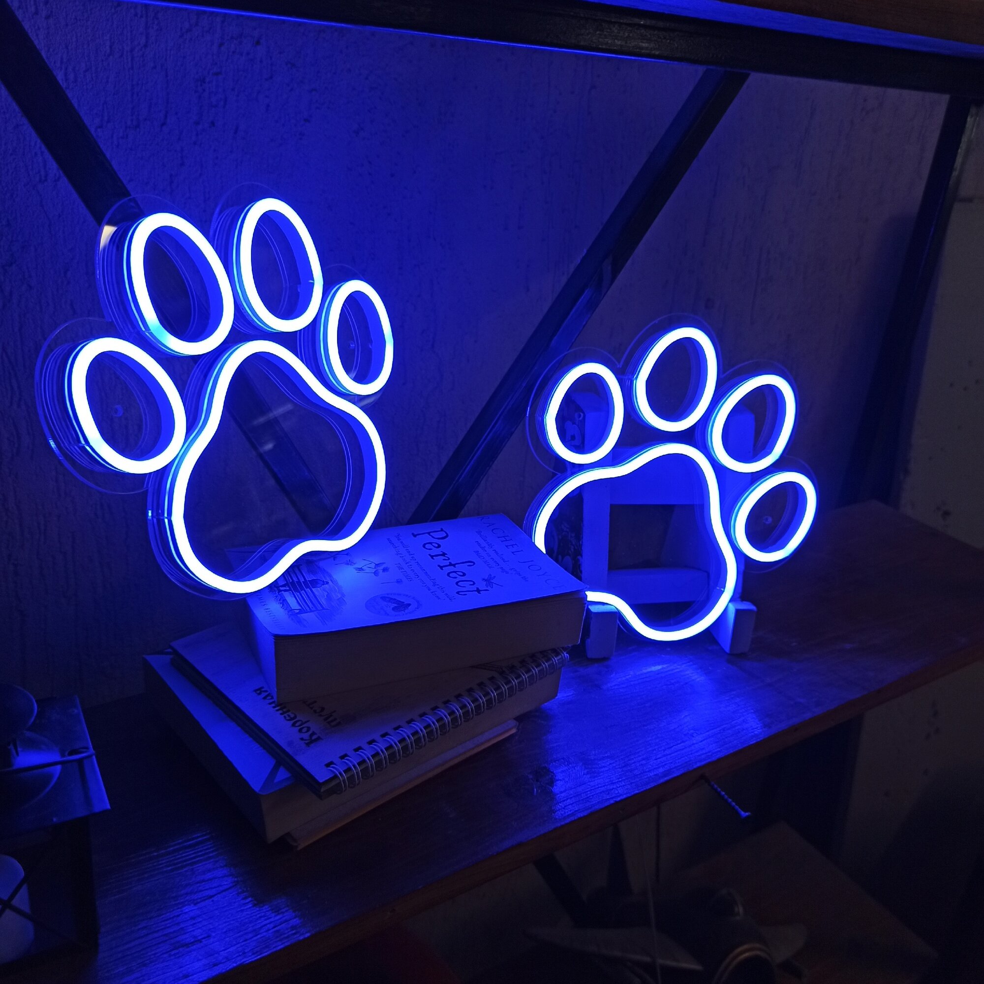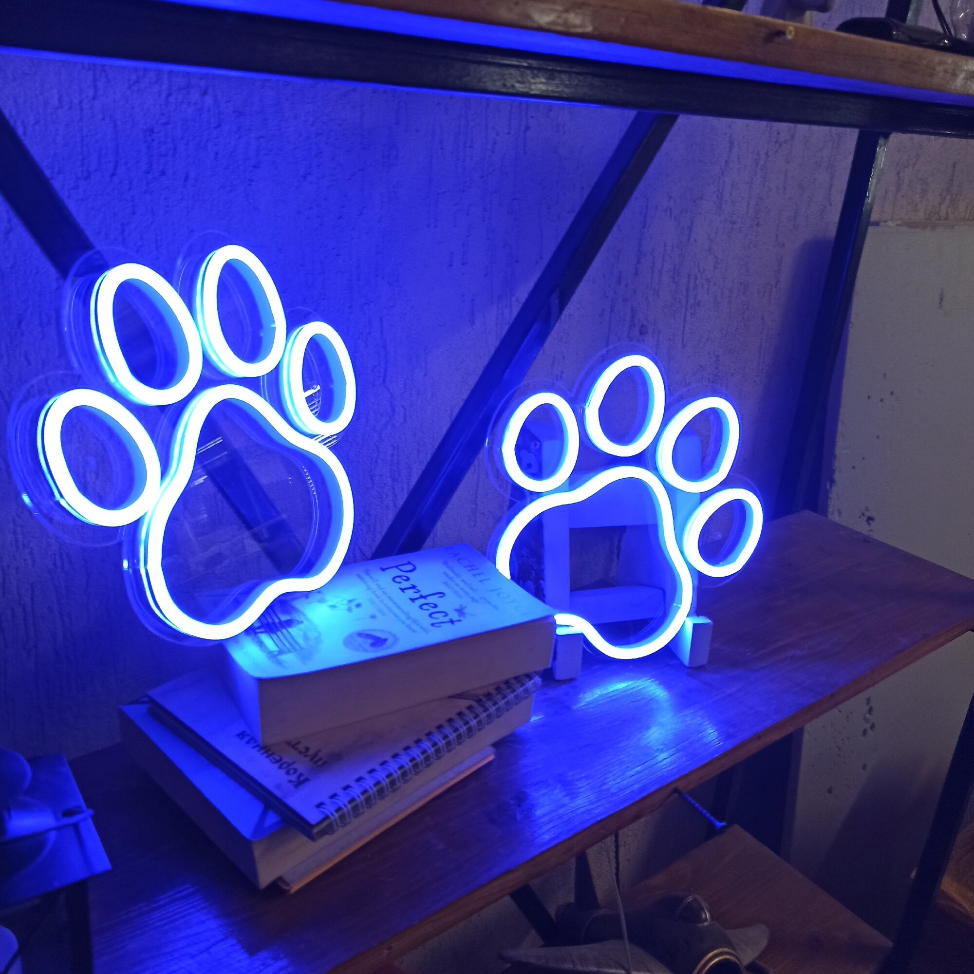 Декоративный неоновый светильник на прозрачной подложке Лапы, 40х33 см. Ручная работа. Изготовлен из гибкого небьющегося светодиодного неона. Силиконовая оболочка неона устойчива к механическим повреждениям. Подложка из прозрачного акрила толщиной 3 мм. Мы используем литой акрил, поэтому наши изделия прочные и их сложнее разбить. На прозрачной подложке предусмотрены отверстия для крепления к стене.