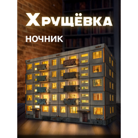 Модель хрущёвки выполнена из прочной фанеры, обеспечивая долговечность и устойчивость конструкции. Каждое окно, каждая деталь продуманы до мелочей (номер дома, трансформаторный щиток). На каждой балконе своя история — кто-то сушит бельё, кто-то оставил велосипед. Это не просто декор, это целый мир, который оживает у вас на столе. Размеры ночника в виде панельки — 20 см в высоту, 29 см в длину и 18 см в глубину — идеальные пропорции для любой комнаты. Забудьте о грязи и лишних инструментах: сборка не требует клея, а инструкция внутри упаковки поможет вам собрать макет быстро и легко как пазл. Техническое отверстие позволяет аккуратно спрятать провод внутри хрущёвки, избавив вас от беспорядка из проводов и используя дом в качестве фигурки.
