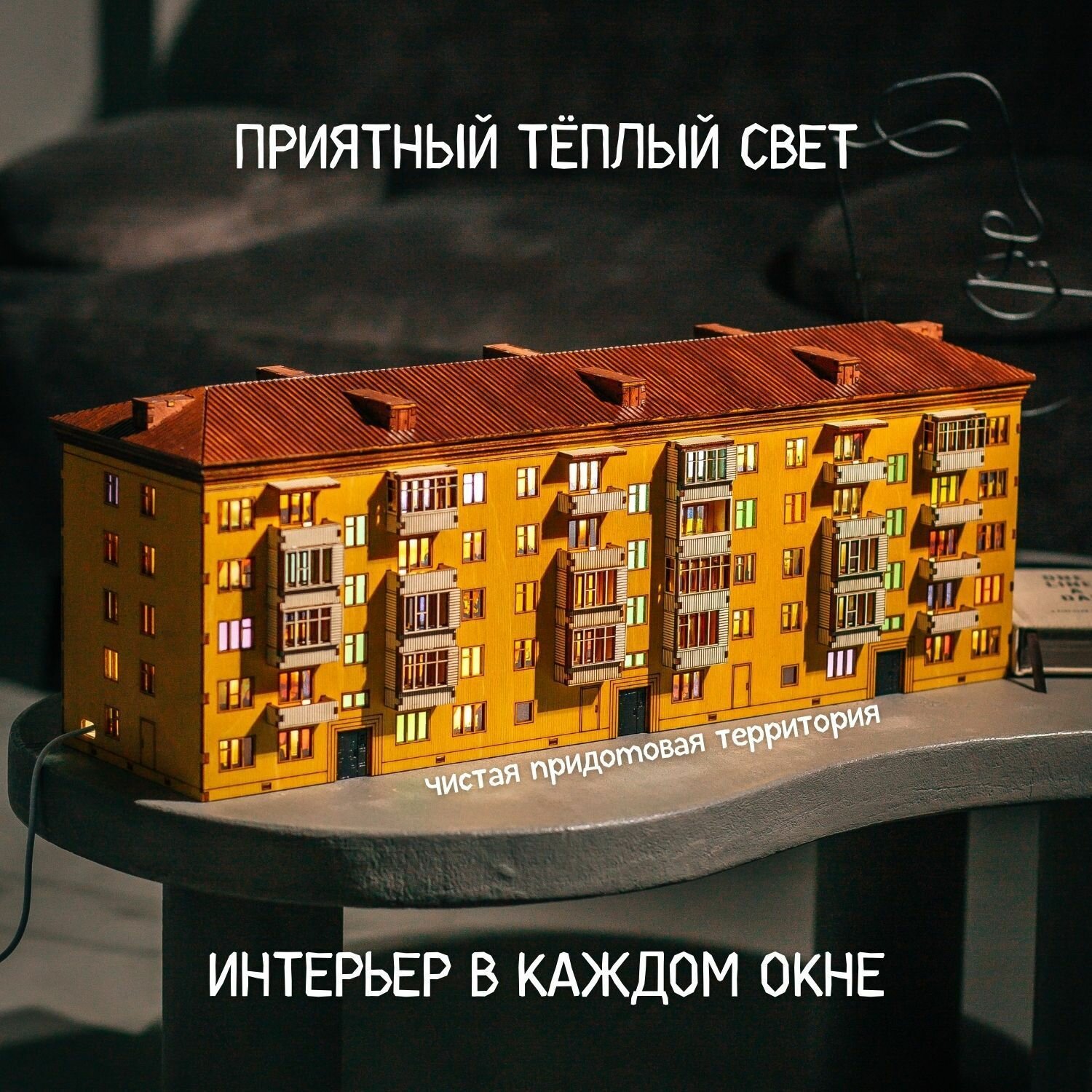 Светильник-ночник «Панелька». Комплект для сборки. Интерьер в окнах, 5 этажей/3 подъезда, покатая крыша, покраска: сравнение цен, характеристики, фото, актуальное наличие и цены.