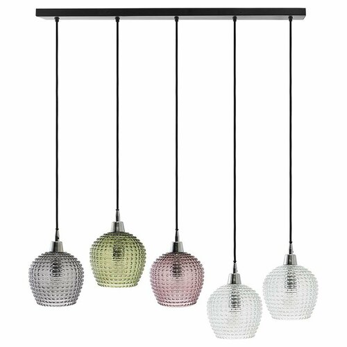 Материалы: стекло, железо. Размеры: 110х18х150 см. Цвет: сливовый/зеленый/серый. Длина провода: 1,1 м, 1,3 м, 1,5 м. Тип цоколя: 5хЕ27. Максимальная мощность ламп: 5х25 Вт. Степень пылевлагозащиты: IP20. Площадь освещения: 8,5 кв. м. Лампы в комплекте: нет.
