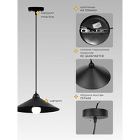 Светильник подвесной Конус 21 Век свет Лофт Черная, E27, площадь освещения 8 м²