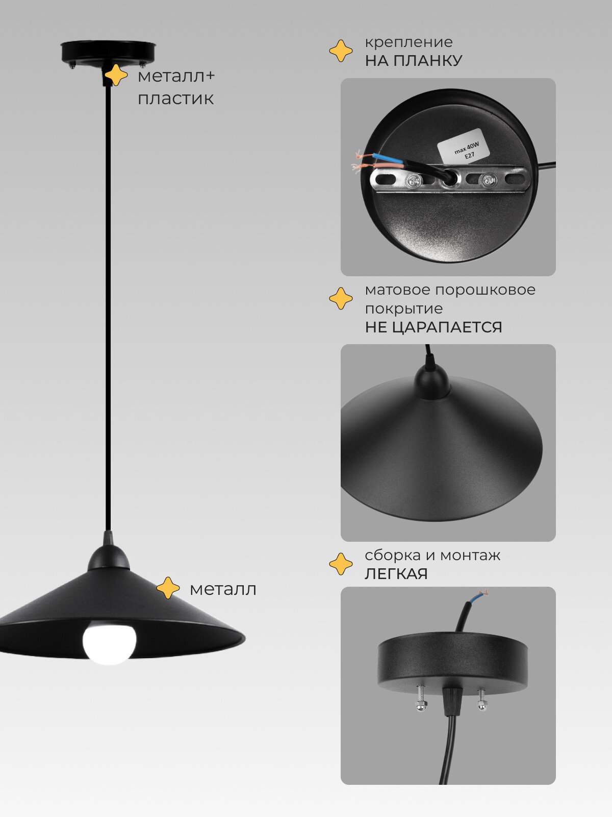 Светильник подвесной Конус 21 Век свет Лофт Черная, E27, площадь освещения 8 м²: сравнение цен, характеристики, фото, актуальное наличие и цены.
