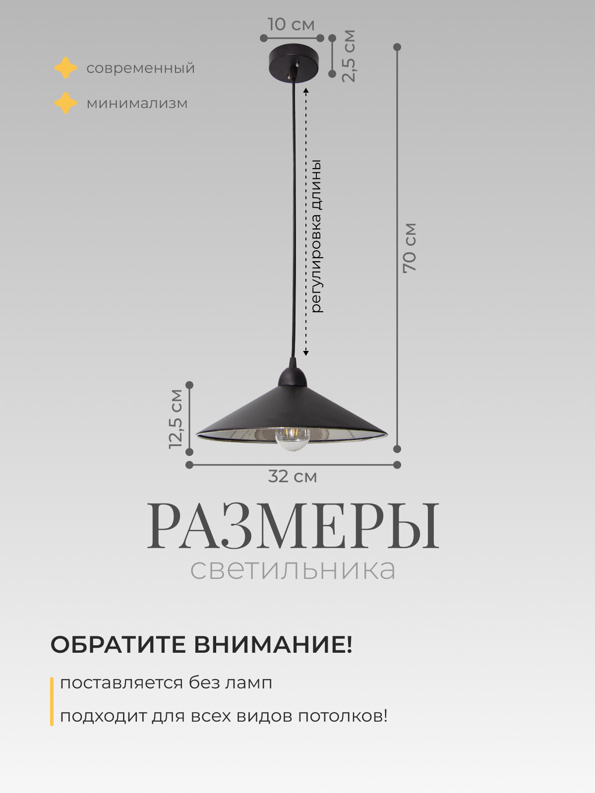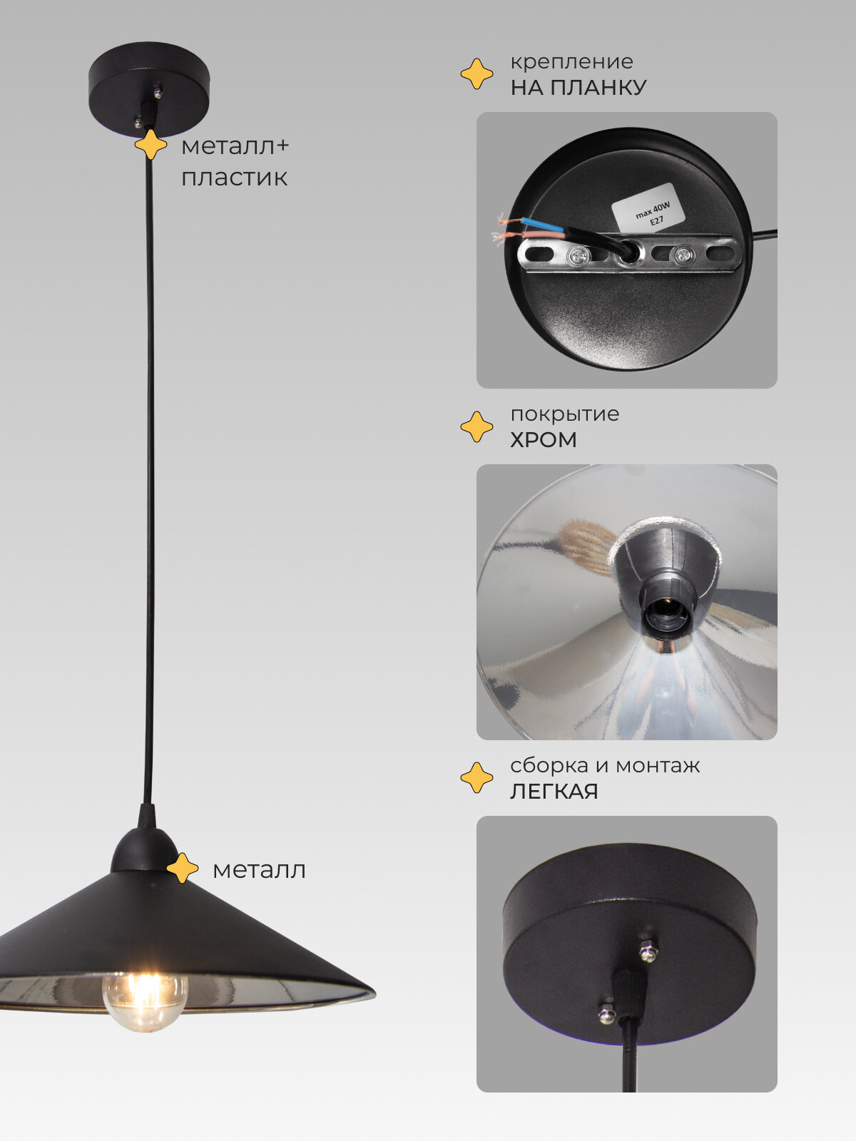 Светильник подвесной Конус 21 Век свет Лофт Черный Хром, E27, площадь освещения 8 м²: сравнение цен, характеристики, фото, актуальное наличие и цены.