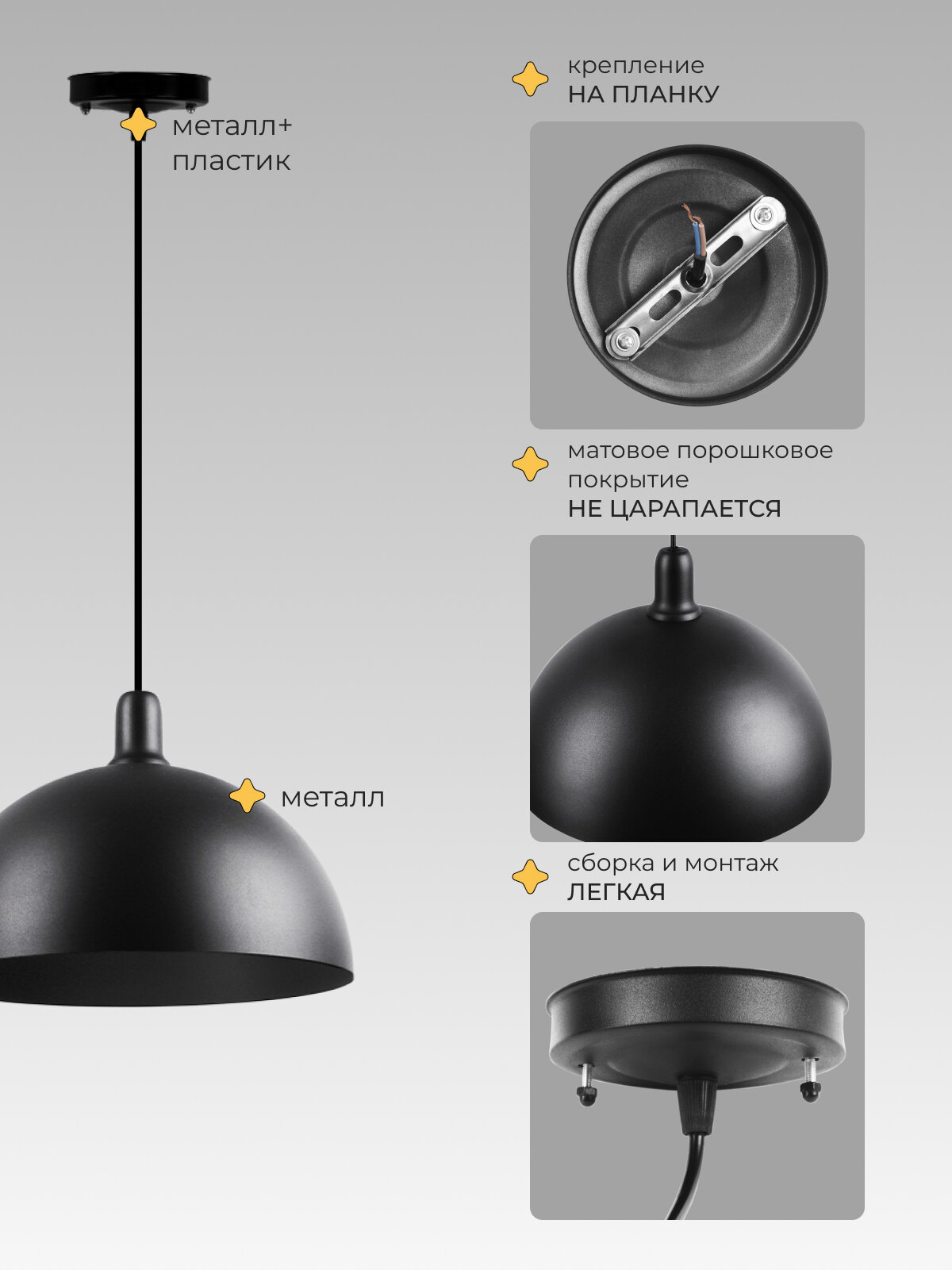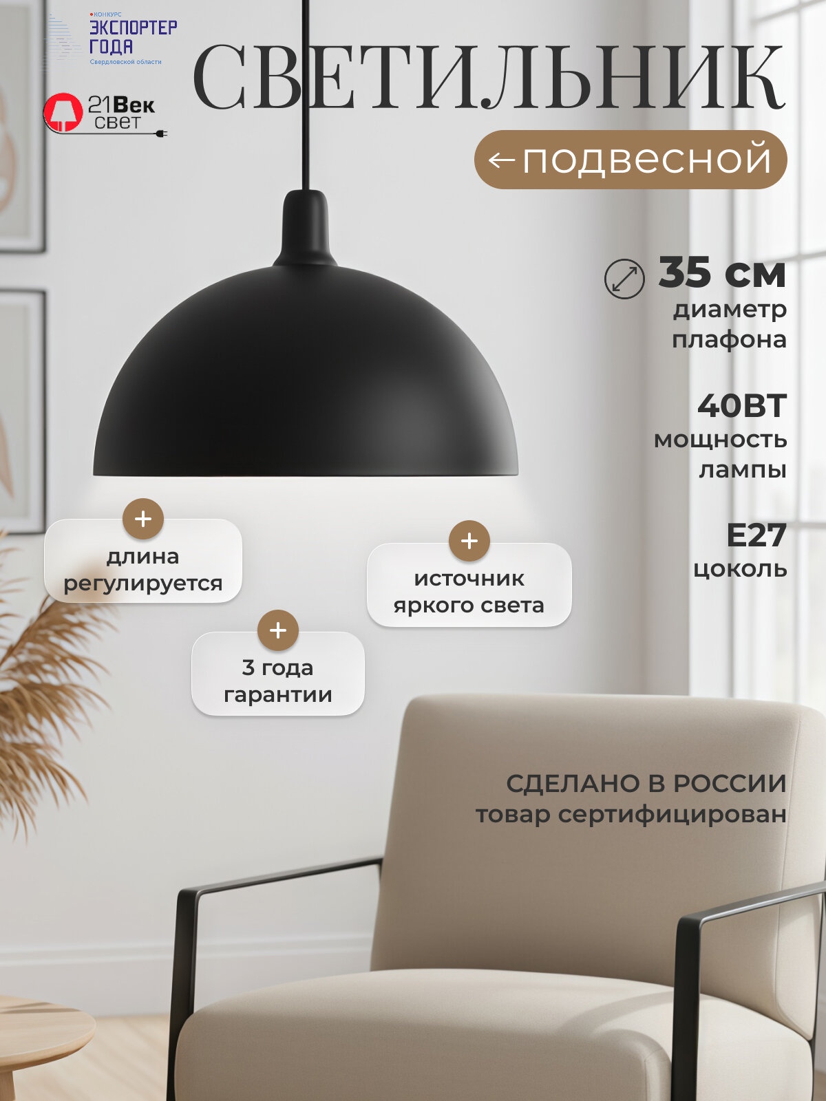 Светильник подвесной Купол 21 Век свет Лофт Черная, Е27, площадь освещения 8 м²: сравнение цен, характеристики, фото, актуальное наличие и цены.