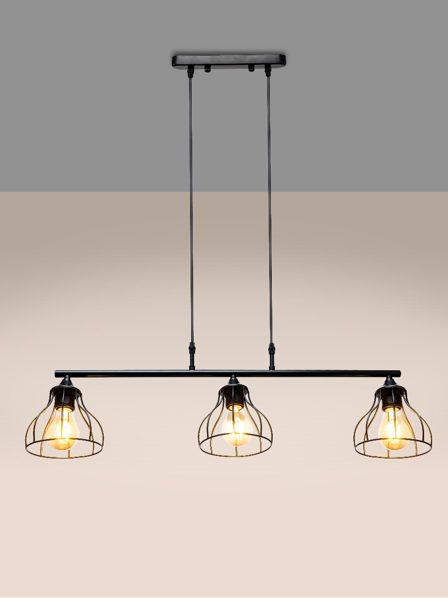 Светильник оснащен тремя плафонами, выполненными из металла и имеющими многоугольную форму. Это обеспечивает равномерное распределение света и создает уютную атмосферу в помещении.