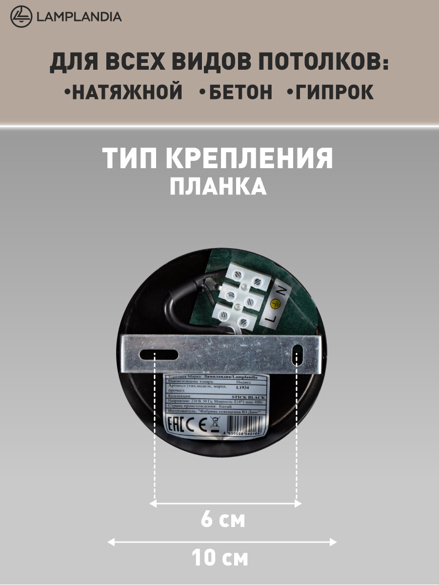 Светильник подвесной Lamplandia L1934 STICK BLACK, Е14*1 макс 40Вт: сравнение цен, характеристики, фото, актуальное наличие и цены.