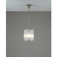Современный подвесной светильник серии Monte в классическом стиле. Оригинальный и лаконичный дизайн в металлическом каркасе декорированный хрустальными вставками разной высоты. В качестве источника света можно использовать лампы накаливания или LED с цоколем Е14. Вся конструкция надежно крепится на планку. Данная модель станет отличным дополнением для кухни, холла или гостиной. При монтаже светильника, высоту можно отрегулировать.