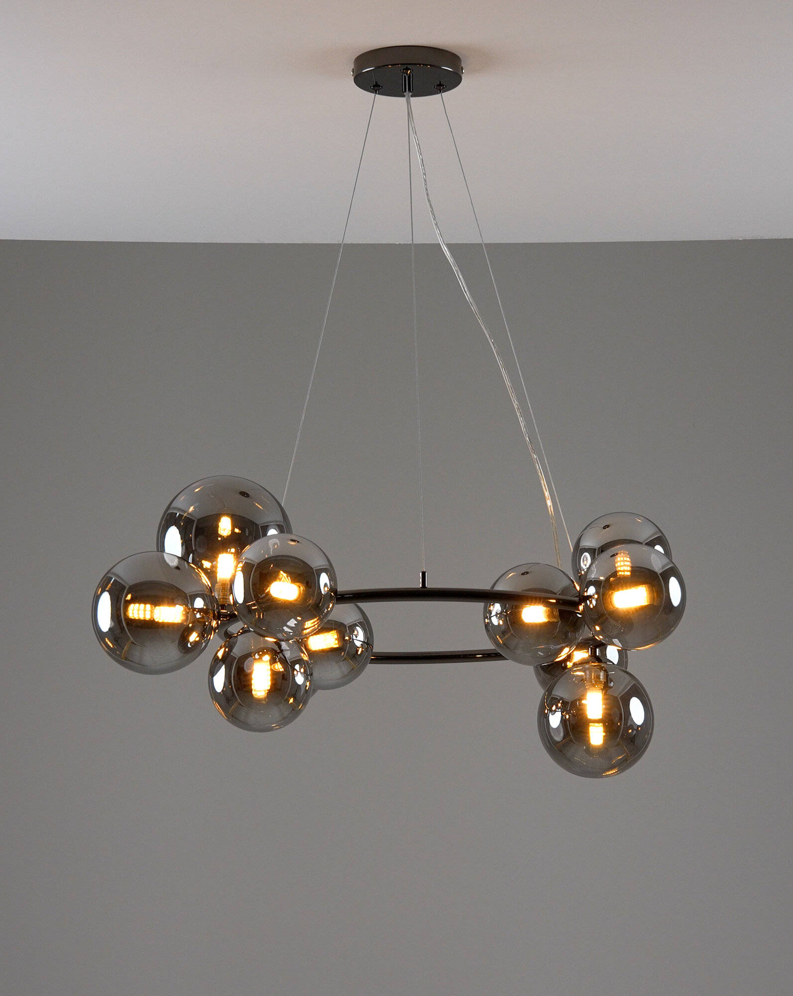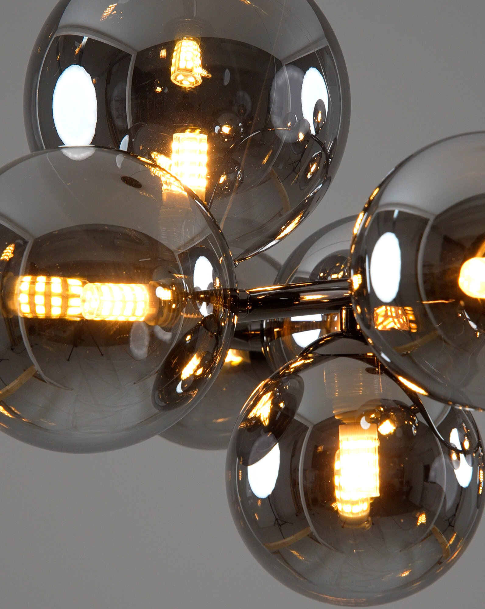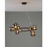 Люстра оснащена 11 плафонами-сферами, которые равномерно распределены по всей длине и ширине светильника. Направление плафонов - в стороны, что обеспечивает равномерное освещение всего пространства.