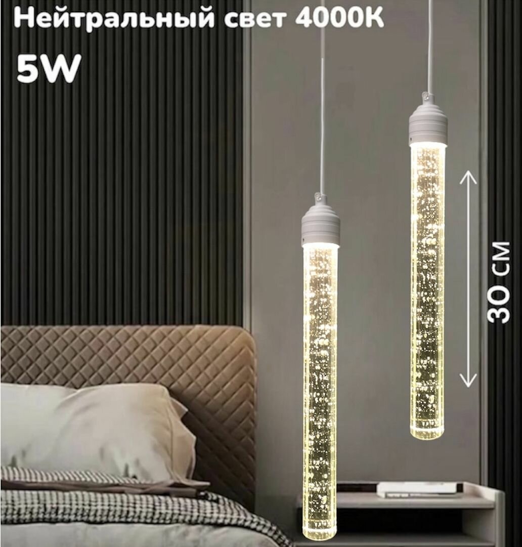 Купить Светильник подвесной потолочный прозрачный , Бра прикроватные Wogow 001 Нейтральный свет Белый 30 см с доставкой по всей России.