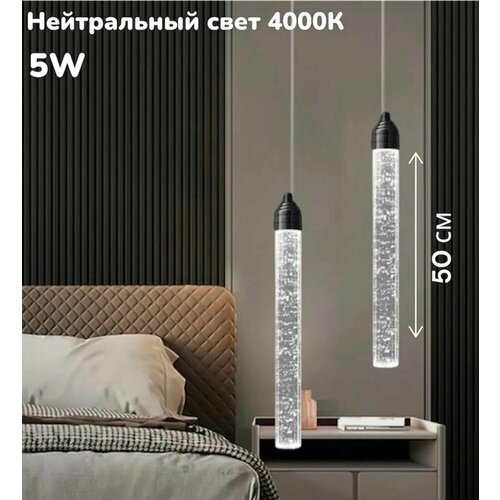 Купить Светильник подвесной потолочный прозрачный , Бра прикроватные Wogow 001 Нейтральный свет Черный 50 см с доставкой по всей России.