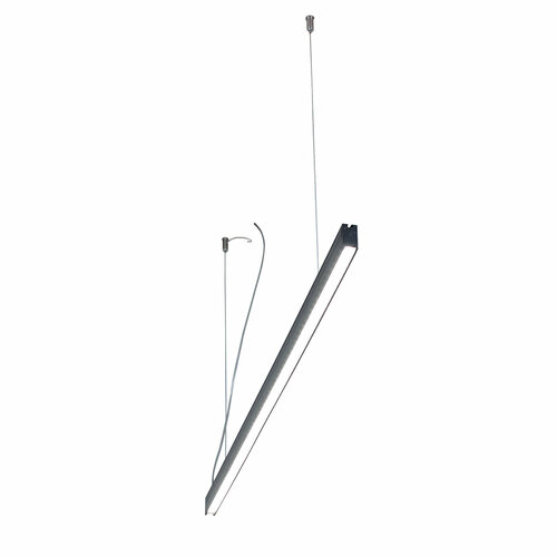 Линейный светодиодный светильник. Черный пластиковый корпус. Напряжение 85-265V, мощность 30W, цвет свечения дневной белый 4000, световой поток 3000Lm, угол свечения 30 градусов. Класс защиты IP40. Размеры 1170x23x40мм. Длина провода 1100мм. Максимальная длина регулируемого подвеса 1200мм.