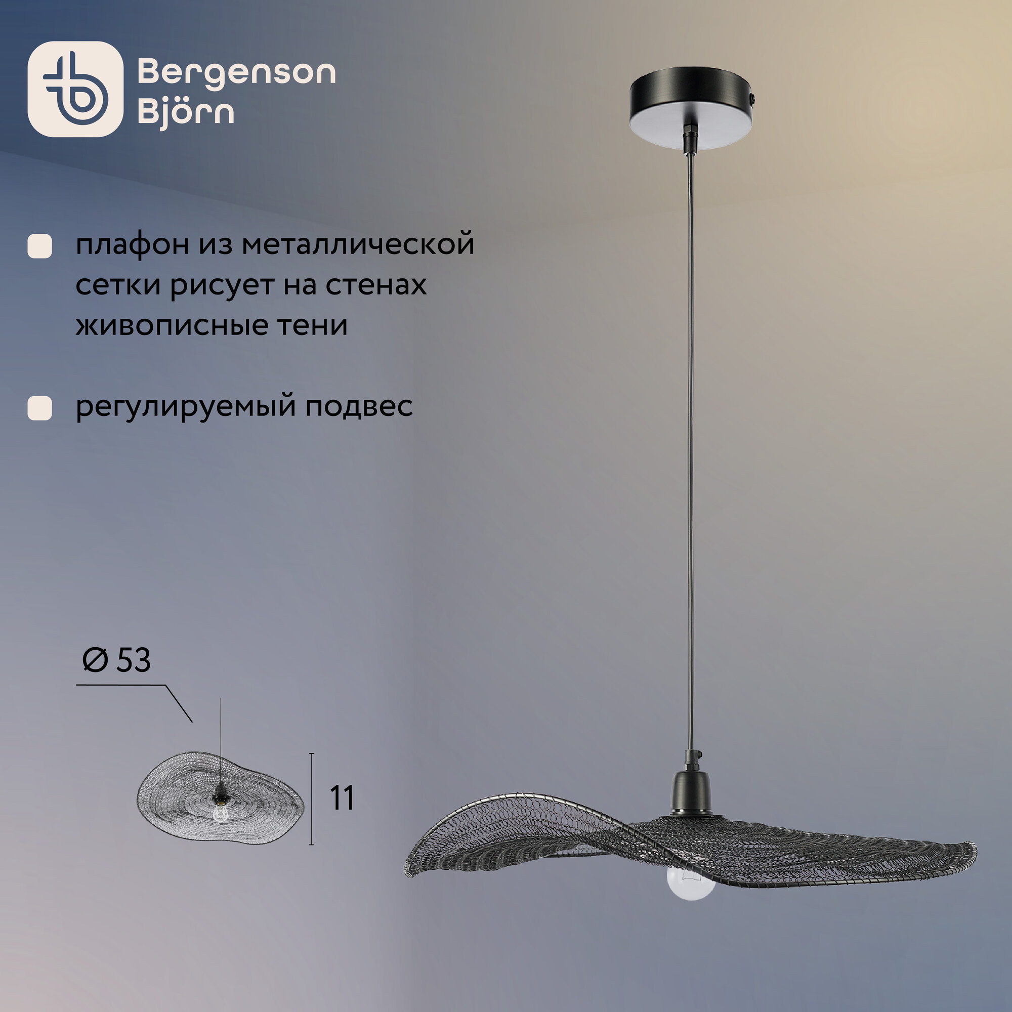 Светильник подвесной Vinger от бренда Bergenson Bjorn – прекрасный способ добавить интерьеру характер и индивидуальность. Подвес привлекает качественным исполнением и интересным дизайном. Его плафон из металлической сетки рисует на стенах и потолке живописные тени, создавая в помещении волшебную атмосферу.