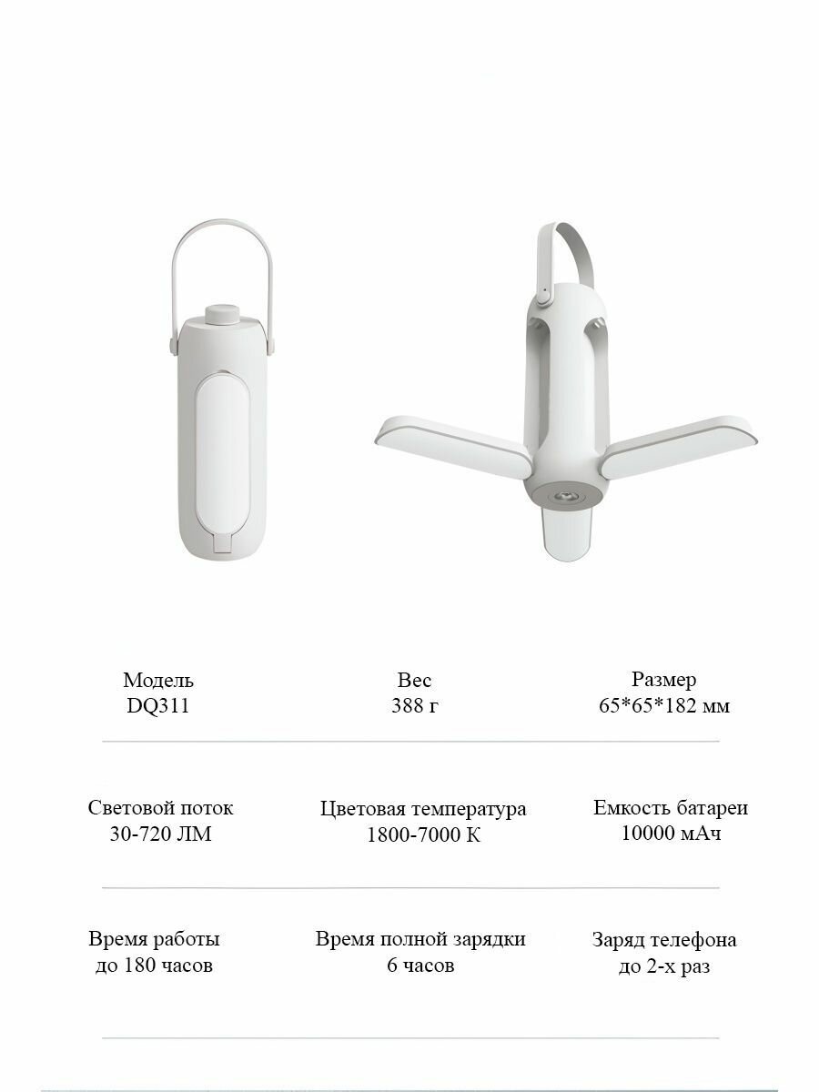 Светильник портативный светодиодный раскладной аккумуляторный, Зарядка от USB, c функцией Power bank, белый: сравнение цен, характеристики, фото, актуальное наличие и цены.