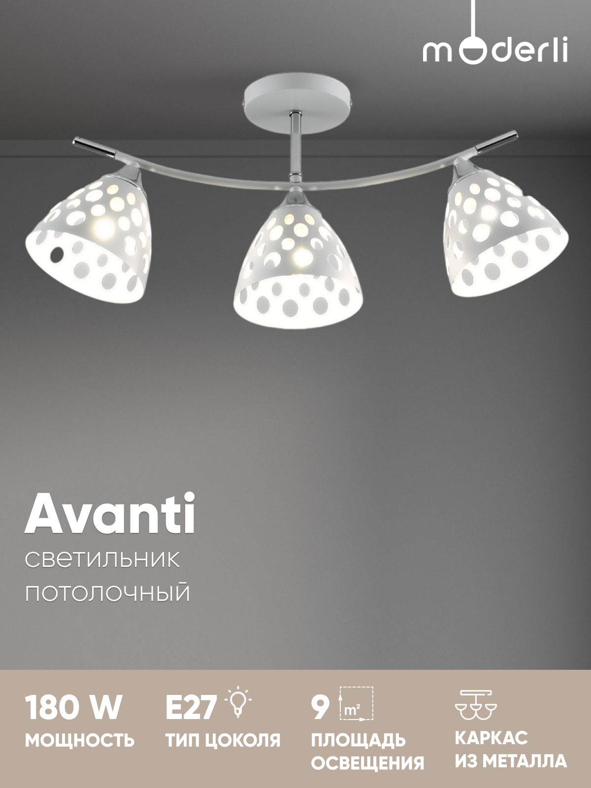 Светильник потолочный Moderli Avanti V10927-C, E27, 180Вт, 3 плафона, белый/хром: сравнение цен, характеристики, фото, актуальное наличие и цены.
