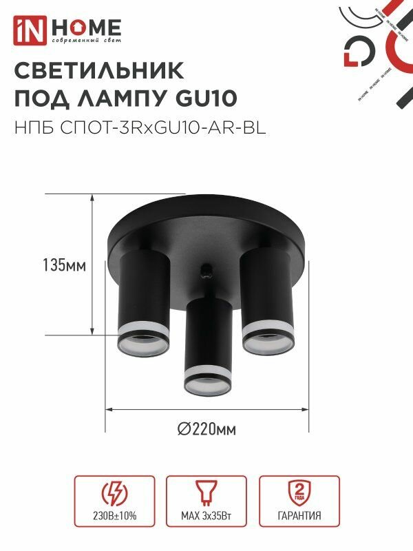 Светильник потолочный НПБ СПОТ-3RxGU10-AR-BL под GU10 с круглой базой черный IN HOME: сравнение цен, характеристики, фото, актуальное наличие и цены.