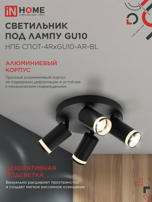 Светильник потолочный НПБ СПОТ-4RxGU10-AR-BL под GU10 с круглой базой черный IN HOME: сравнение цен, характеристики, фото, актуальное наличие и цены.