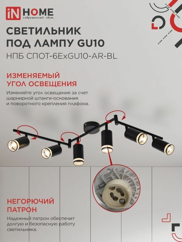Светильник потолочный НПБ СПОТ-6ExGU10-AR-BL под GU10 с регулир. базой черный IN HOME: сравнение цен, характеристики, фото, актуальное наличие и цены.