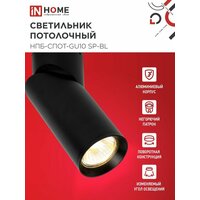 Светильник потолочный НПБ-СПОТ-GU10 SP-BL 60х154мм черный IN HOME - это настенно-потолочный светильник, разработанный для интерьерного и акцентного освещения. Он может быть установлен на все типы потолков, а также на скошенные или вертикальные поверхности.