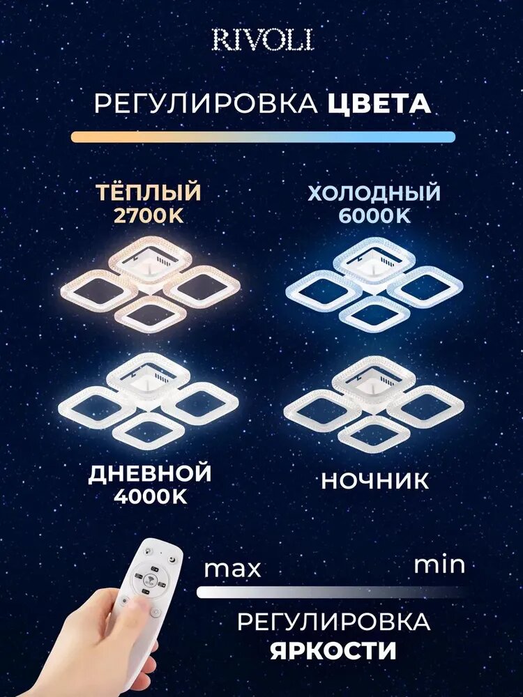 Купить Светильник потолочный светодиодный Rivoli Nikki 6112-104 64 Вт LED 2800К — 6200К модерн с пультом с доставкой по всей России. Светильник потолочный светодиодный Rivoli Nikki 6112-104 64 Вт LED 2800К — 6200К модерн с пультом: сравнение цен, характеристики, фото, актуальное наличие и цены.