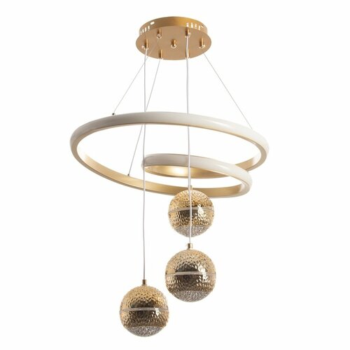 Создайте атмосферу стильного и равномерного освещения! Подвесной светильник «Рондо» с LED-панелями — это современный источник света для просторных помещений. Композиция из четырех золотых сфер формирует целостный световой образ, а встроенные светодиоды гарантируют долгий срок службы и энергоэффективность. Мощное освещение для больших комнат: Световой поток свыше 9600 люменов комфортно освежает пространство до 20 м². Светильник подходит для зонирования гостиной, создания уютной атмосферы в спальне или парадного света в зале. Дизайнерская геометрия из четырех сфер: Композиция из линий и колец с золотыми шарами-плафонами задает стиль интерьеру в духе хай-тек. Прозрачные акриловые вставки и силиконовые элементы обеспечивают мягкое рассеивание без бликов. Гибкая система подвеса: Модель поставляется с тросовой системой или на проводе. Высота от потолка регулируется от 50 до 100 см, что позволяет адаптировать светильник под уровень натяжного потолка. Надежное LED-оснащение: Встроенные светодиодные модули суммарной мощностью 138 Вт не требуют замены. Выбирайте подходящую цветовую температуру — от теплого белого (3000K) до нейтрального дневного света (6000K). Особенности установки: Светильник монтируется на планку, его конструкция безопасна для натяжных потолков. Модель поставляется без пульта дистанционного управления — вы регулируете свет с помощью стандартного выключателя. «Рондо» с золотыми сферами — это законченное архитектурное решение, которое делает интерьер светлым и современным.