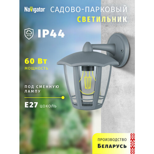 Светильник садовый Navigator 80 462, 6 граней, серый, IP44, цоколь E27: сравнение цен, характеристики, фото, актуальное наличие и цены.