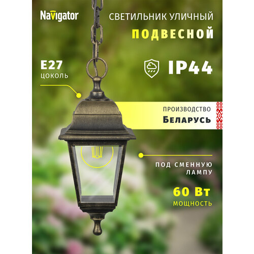 Светильник садовый подвесной Navigator 80 479, 4 грани, черный под бронзу, IP44, цоколь E27: сравнение цен, характеристики, фото, актуальное наличие и цены.