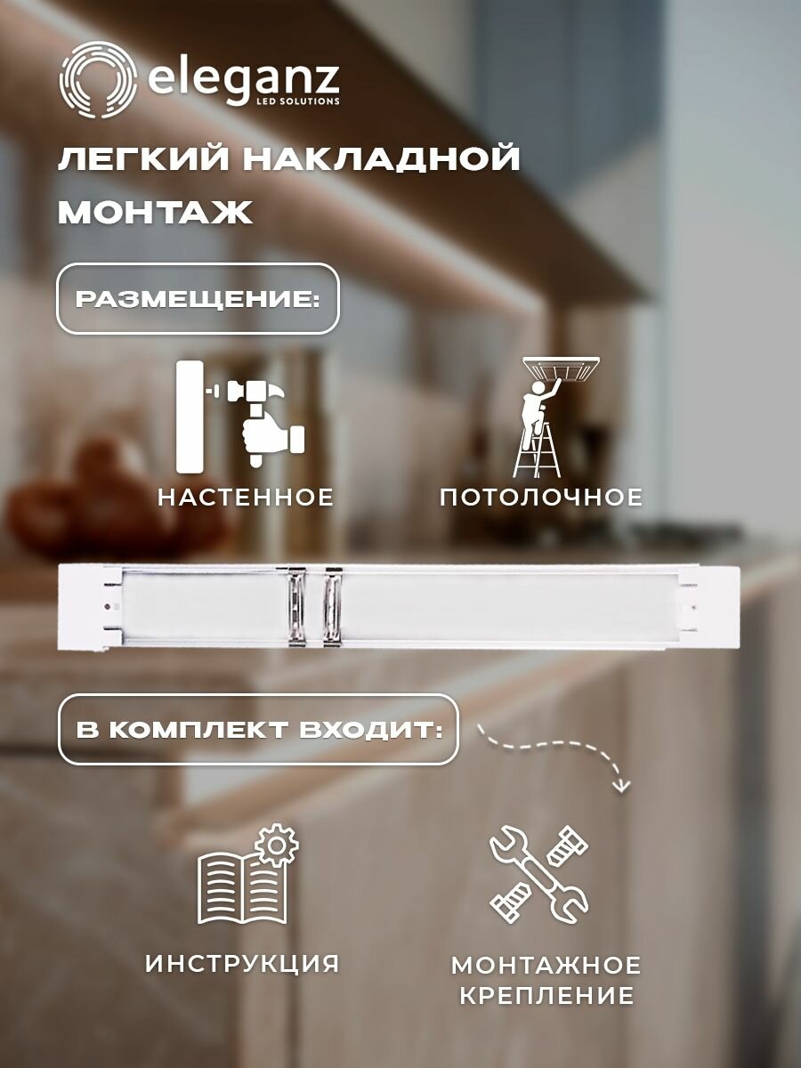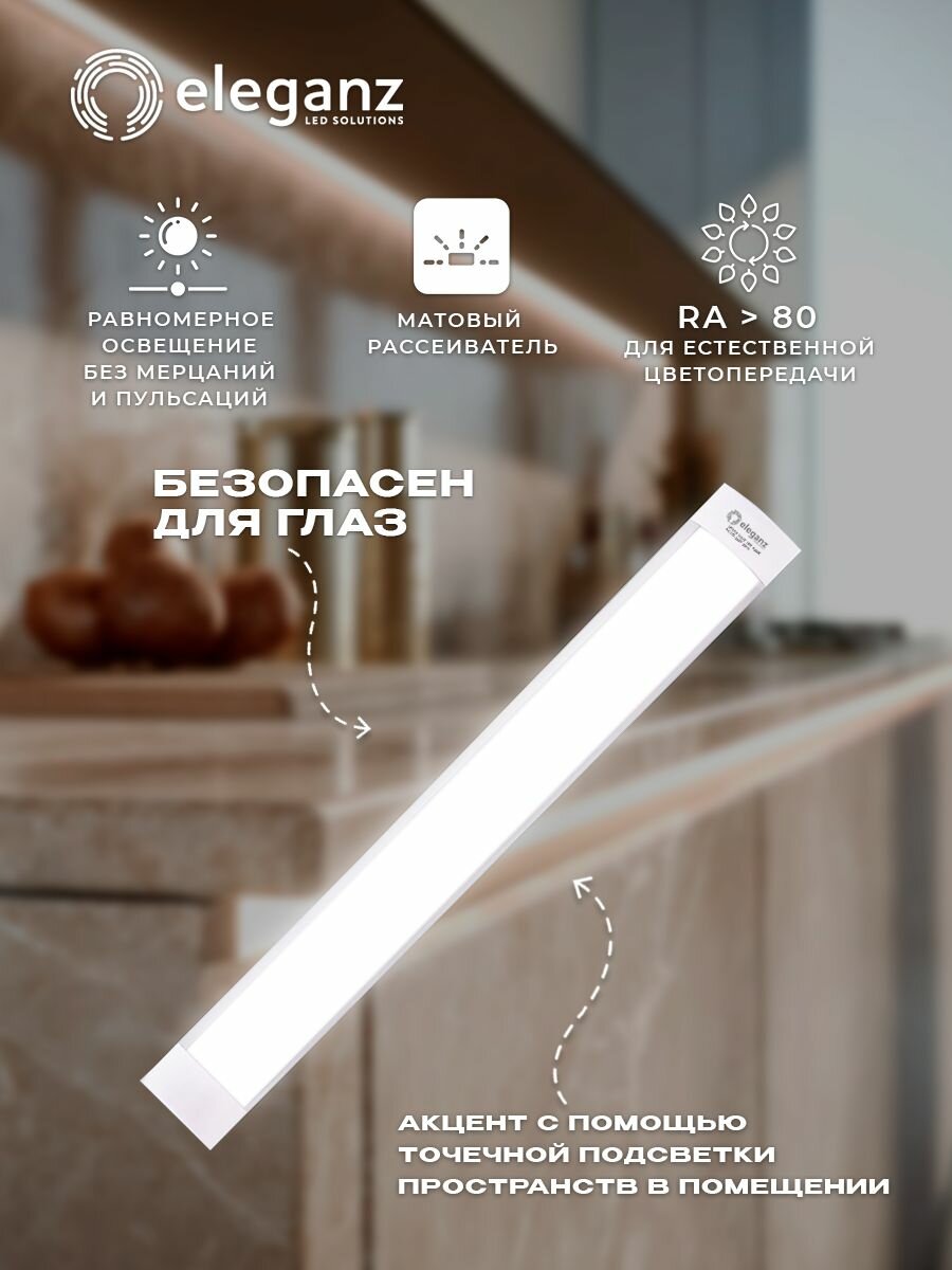 Светильник светодиодный линейный «Eleganz» 36W, 4500К, 3600Лм, 1200х75х25мм, 1 шт, накладной настенно-потолочный: сравнение цен, характеристики, фото, актуальное наличие и цены.