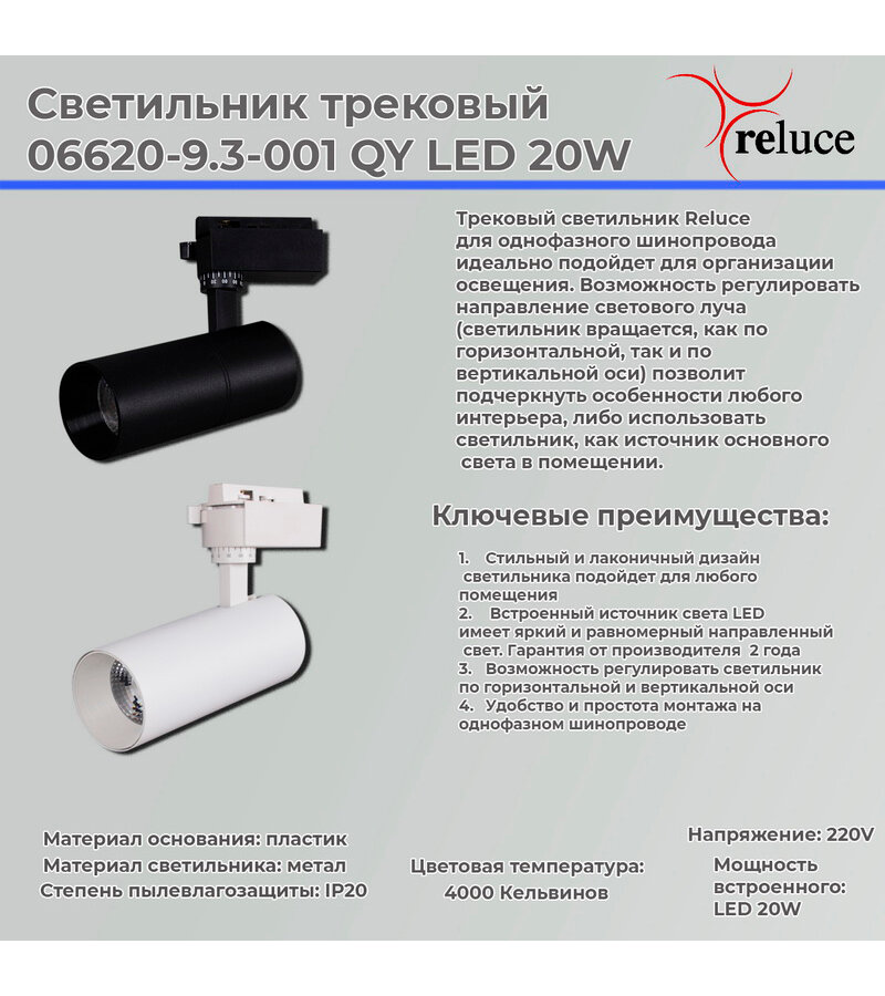 Купить Светильник светодиодный трековый Reluce 06620-9.3-001QY LED20W BK с доставкой по всей России. Светильник светодиодный трековый Reluce 06620-9.3-001QY LED20W BK: сравнение цен, характеристики, фото, актуальное наличие и цены.