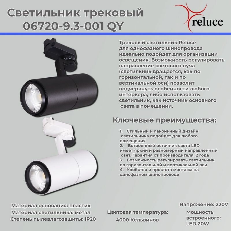 Купить Светильник светодиодный трековый Reluce 06720-9.3-001QY LED20W BK с доставкой по всей России. Светильник светодиодный трековый Reluce 06720-9.3-001QY LED20W BK: сравнение цен, характеристики, фото, актуальное наличие и цены.