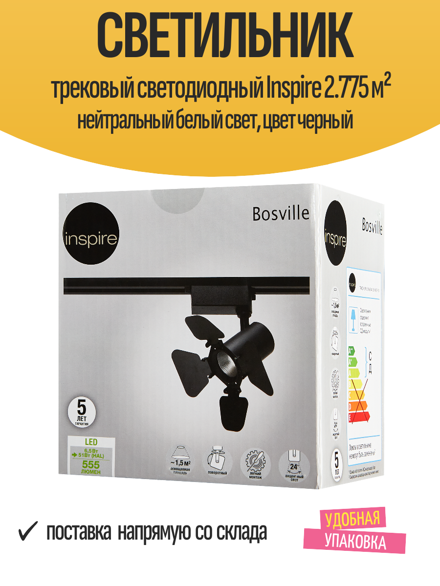 Светильник трековый светодиодный Inspire 2.775 м² нейтральный белый свет, цвет черный: сравнение цен, характеристики, фото, актуальное наличие и цены.