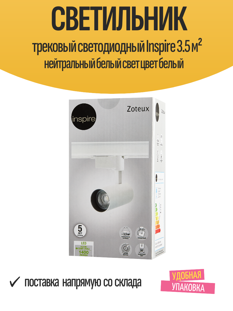 | Дополнительная информация | Светильник трековый светодиодный Inspire 3.5 м² нейтральный белый свет цвет белый |