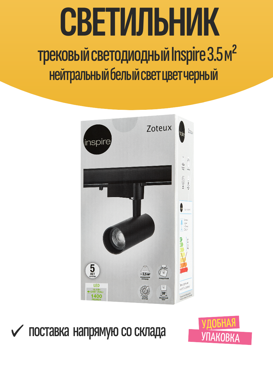 | Дополнительная информация | Светильник трековый светодиодный Inspire 3.5 м² нейтральный белый свет цвет черный |