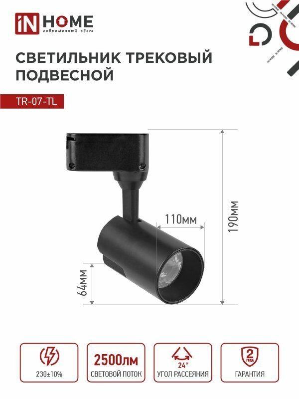 Светильник трековый светодиодный TR-07-TL 25Вт 4000К 2500Лм IP40 24 градуса черный серии TOP-LINE IN HOME: сравнение цен, характеристики, фото, актуальное наличие и цены.