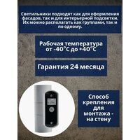 Освещение фасадов коттеджей, дач, забаоров. Декоративная и функциональная подсветка террас, беседок, веранд. Освещение лестниц, крылец, входных групп. Установка вдоль ограждений и заборов. Использование на коммерческих зданиях — ресторанах, отелях, офисах.