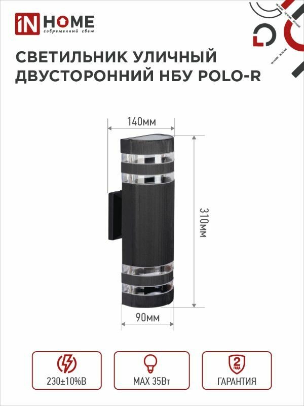 Светильник уличный настенный двусторонний НБУ POLO-R-2хGU10-BL алюминиевый черный IP54 IN HOME: сравнение цен, характеристики, фото, актуальное наличие и цены.