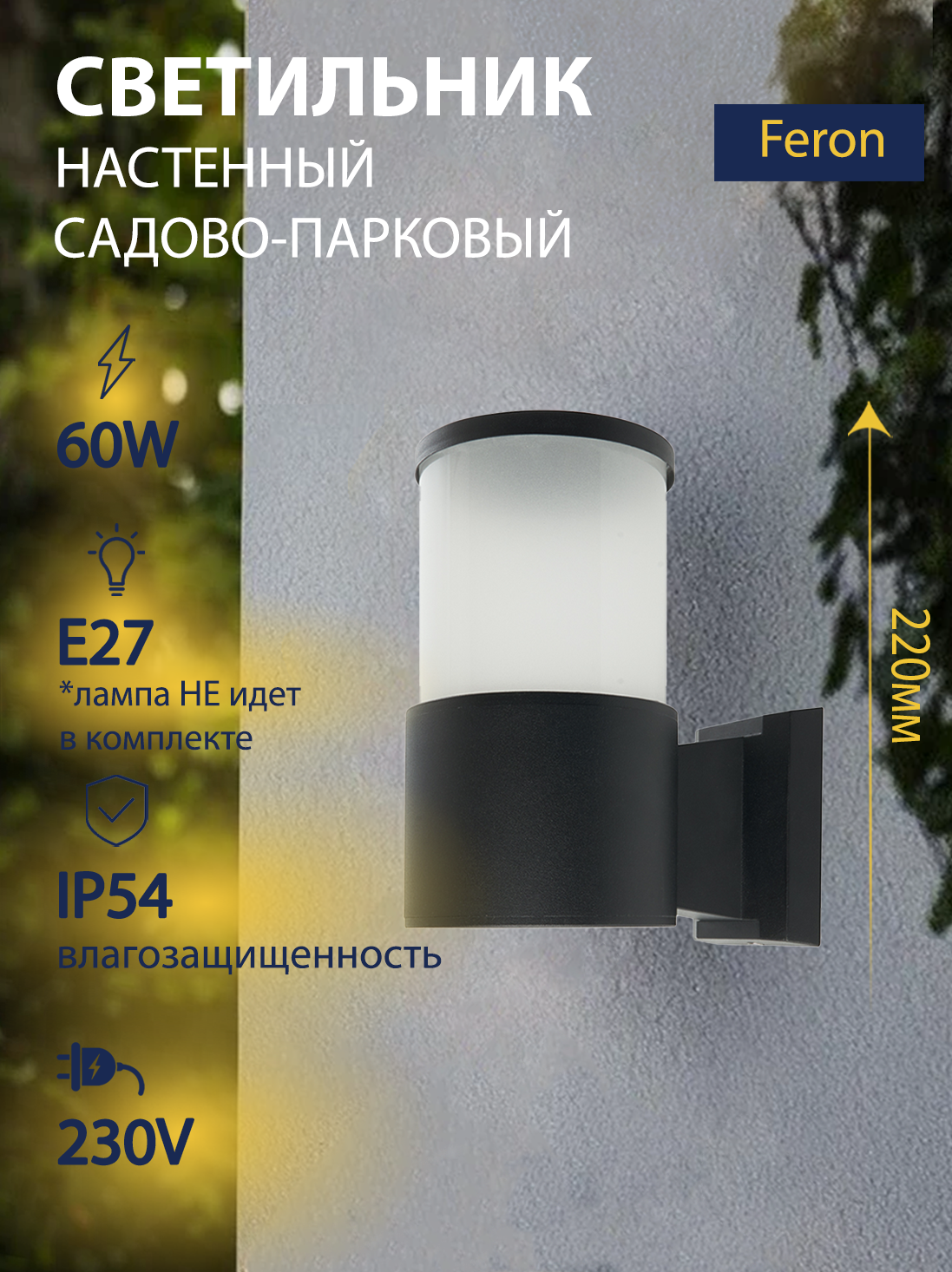 Светильник уличный садово-парковый на стену вверх, 60W, 230V, E27, IP54, черный, FERON DH0904 11656: сравнение цен, характеристики, фото, актуальное наличие и цены.