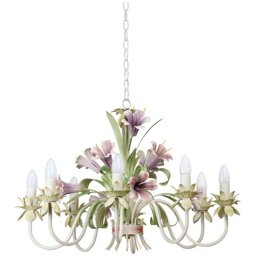 Тип люстра ЭПРА в комплекте нет Тип цоколя E14 Тип крепления подвес Совместимые типы ламп светодиодные, накаливания Количество ламп 8 шт Длина подвеса 57 см Материал арматуры металл Габариты (ШхДхВ) 68x68x126 см Технические характеристики Мощность 480 Ватт Мощность одной лампы 60 Ватт Напряжение 220-240 В Степень пылевлагозащиты IP20 Площадь освещения 24 кв. м Внешний вид Стиль флористический Цвет плафона/абажура разноцветный Цвет арматуры белый, зеленый, фиолетовый, бежевый, разноцветный Особенности Страна бренда Россия