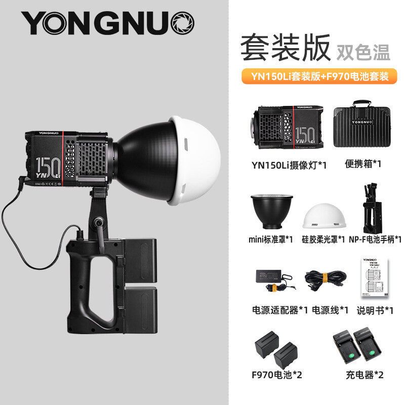 Светильник YONGNUO YN150, COB, 150Вт, двухцветная настройка температуры, комплект батарей F970: сравнение цен, характеристики, фото, актуальное наличие и цены.