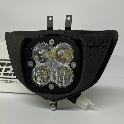 Светодиодная фара представляет собой готовый комплект для установки в штатное место мотоцикла. В комплект входит адаптивная рамка из ударопрочного материала специально разработанная под модель вашего мотоцикла (собственное производство AVTextreme) и светодиодный модуль, предназначенный для использования во внедорожной технике (производство Китай)