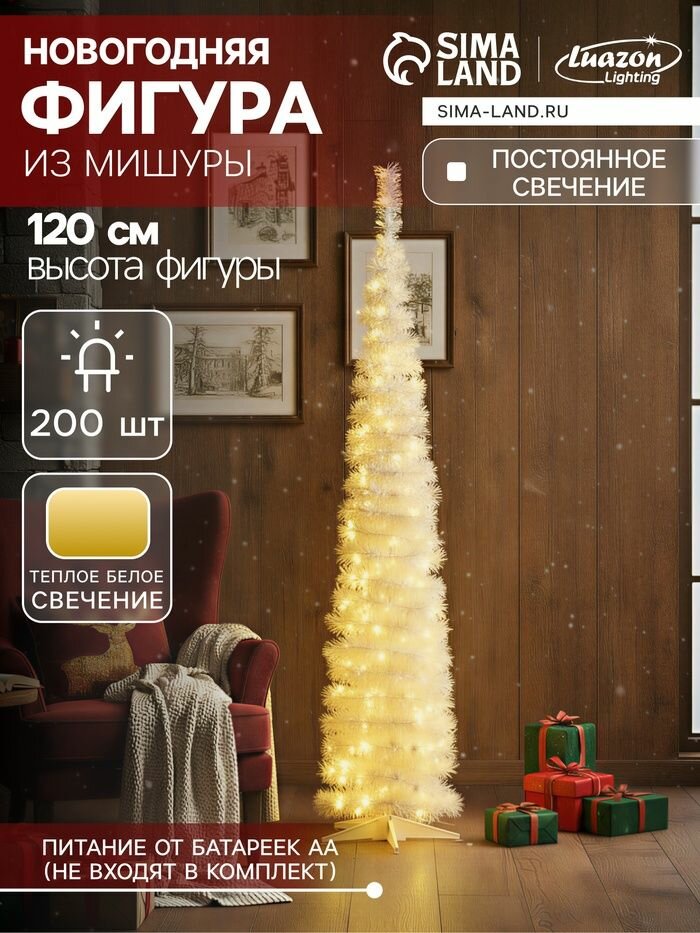 Купить Светодиодная фигура из мишуры Волшебная елка 120 40 см, 200 LED, батарейки ААх3, свечение тёплое белое с доставкой по всей России. Светодиодная фигура из мишуры Волшебная елка 120 40 см, 200 LED, батарейки ААх3, свечение тёплое белое: сравнение цен, характеристики, фото, актуальное наличие и цены.