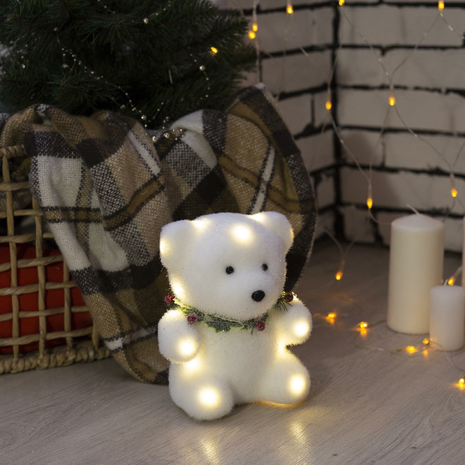 Купить Светодиодная фигура «Мишка» 15×16×12 см, флок, батарейки CR2032×2 (не в комплекте), свечение тёплое белое с доставкой по всей России.