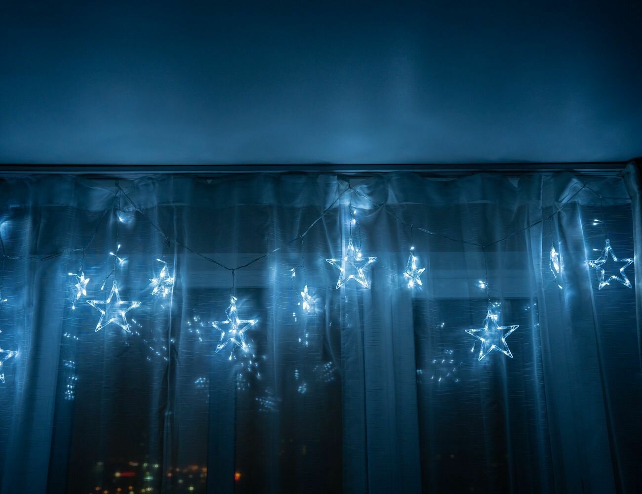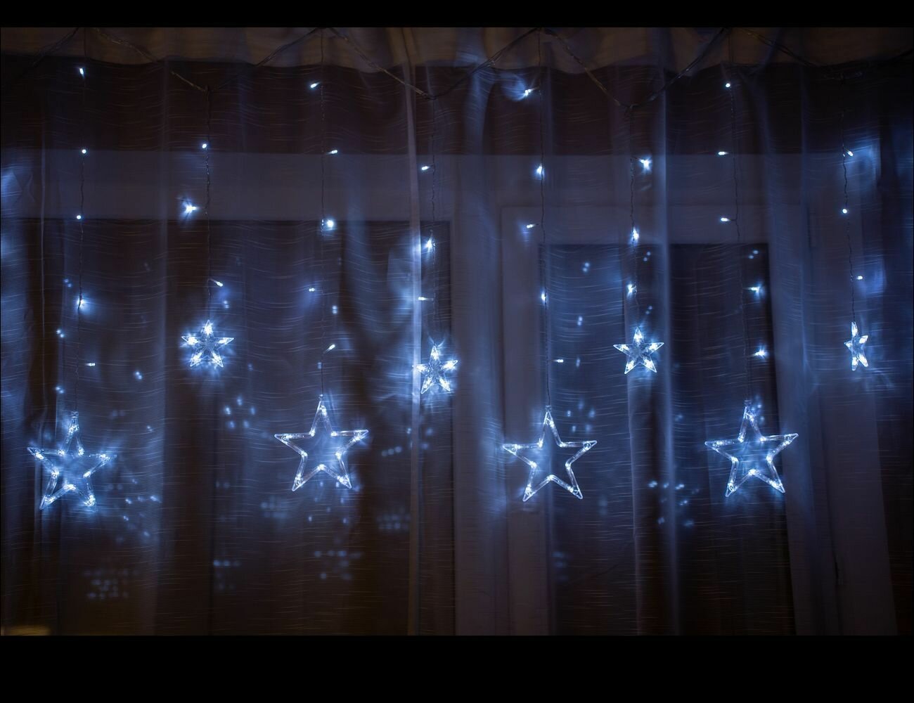 Светодиодная гирлянда бахрома домашние звезды, 2.5х0.9 м, 138 холодных белых LED ламп, прозрачный ПВХ, контроллер, коннектор, IP20, Serpantin 725-0555: сравнение цен, характеристики, фото, актуальное наличие и цены.