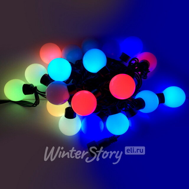 Купить Светодиодная гирлянда Большие Шарики Rich Led 5 м, 20 RGB LED ламп 40 мм, чёрный ПВХ, соединяемая, IP54 с доставкой по всей России.