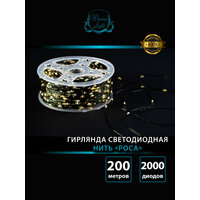 Купить Светодиодная гирлянда с пультом нить Роса Теплый свет 200 метров 2000 лампочек новогодняя, зеленый провод, Winner light с доставкой по всей России.