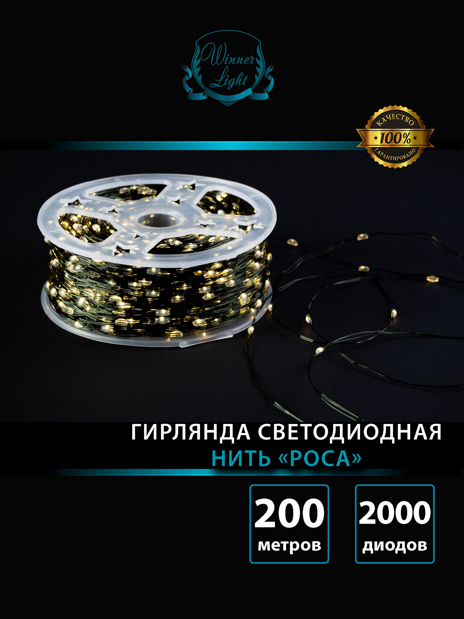 Светодиодная гирлянда с пультом нить Роса Теплый свет 200 метров 2000 лампочек новогодняя, зеленый провод, Winner light: сравнение цен, характеристики, фото, актуальное наличие и цены.