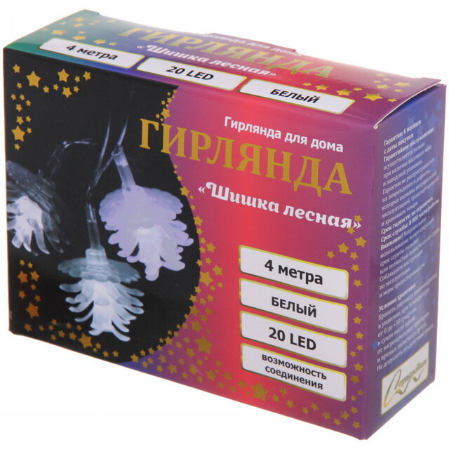 Светодиодная гирлянда Шишки 4 м, 20 холодных белых LED ламп, прозрачный ПВХ, IP20, Serpantin, 725-0074: сравнение цен, характеристики, фото, актуальное наличие и цены.
