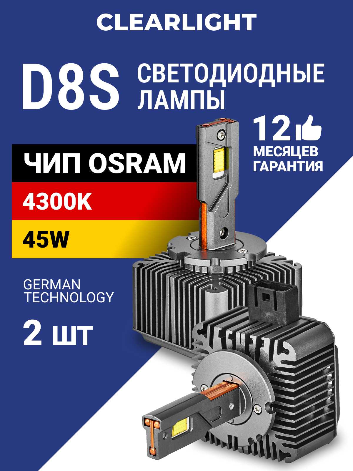 Купить Светодиодная лампа D8S Clearlight LED ORIGINAL 10000 lm, 4300K 2шт с доставкой по всей России. Светодиодная лампа D8S Clearlight LED ORIGINAL 10000 lm, 4300K 2шт: сравнение цен, характеристики, фото, актуальное наличие и цены.