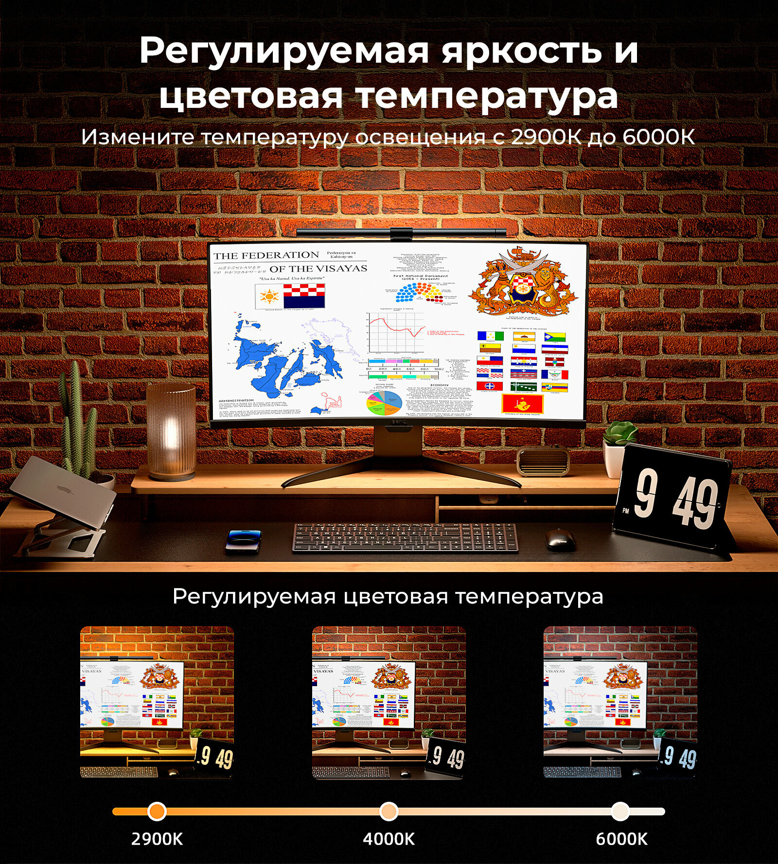 Светодиодная лампа для монитора имеет встроенный интеллектуальный оптический датчик.