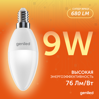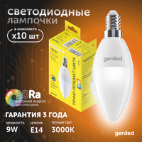 Купить Светодиодная лампа Энергосберегающая Geniled E14 C37 9Вт 3000K 90Ra Свеча 10 шт с доставкой по всей России.